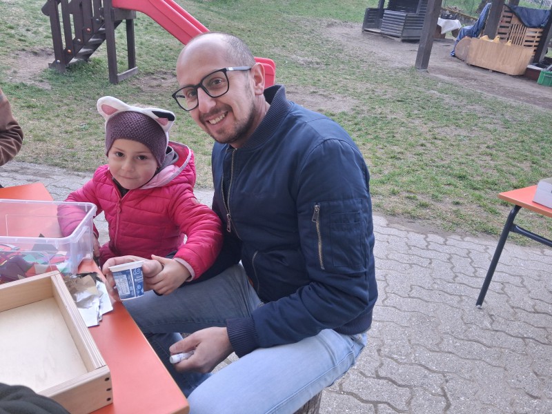 Al loro arrivo, padri e figli sono stati accolti in un’atmosfera festosa all’“angolo dei vasetti”: qui, ognuno ha potuto decorare il proprio contenitore, destinato ad accogliere la terra e i semi che, un giorno, diventeranno le piantine dell’orto. Dopo aver preparato i vasetti, si è passati alla semina: pomodori o piselli, scelti liberamente dai piccoli, secondo i propri gusti. Tutto sono stati poi sistemati sui davanzali delle finestre e delicatamente annaffiati.