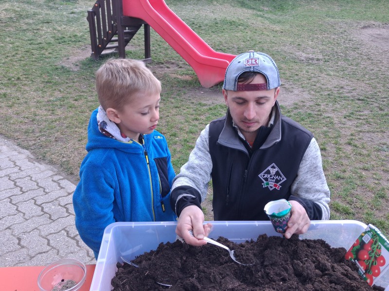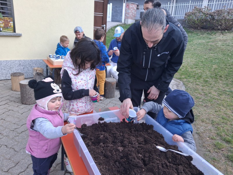 Le insegnanti hanno pensato anche a chi non ha potuto essere presente: per questi papà è stato preparato un “kit casalingo”, per permettere di vivere nel proprio appartamento, insieme ai propri bambini, la stessa esperienza di semina.